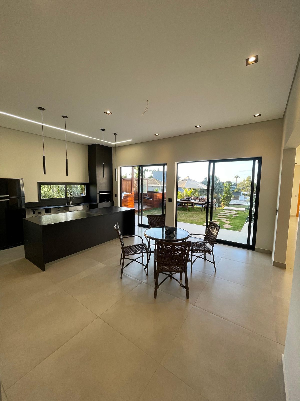 •Sala linear integrada à cozinha gourmet ampla – perfeita para quem gosta de receber