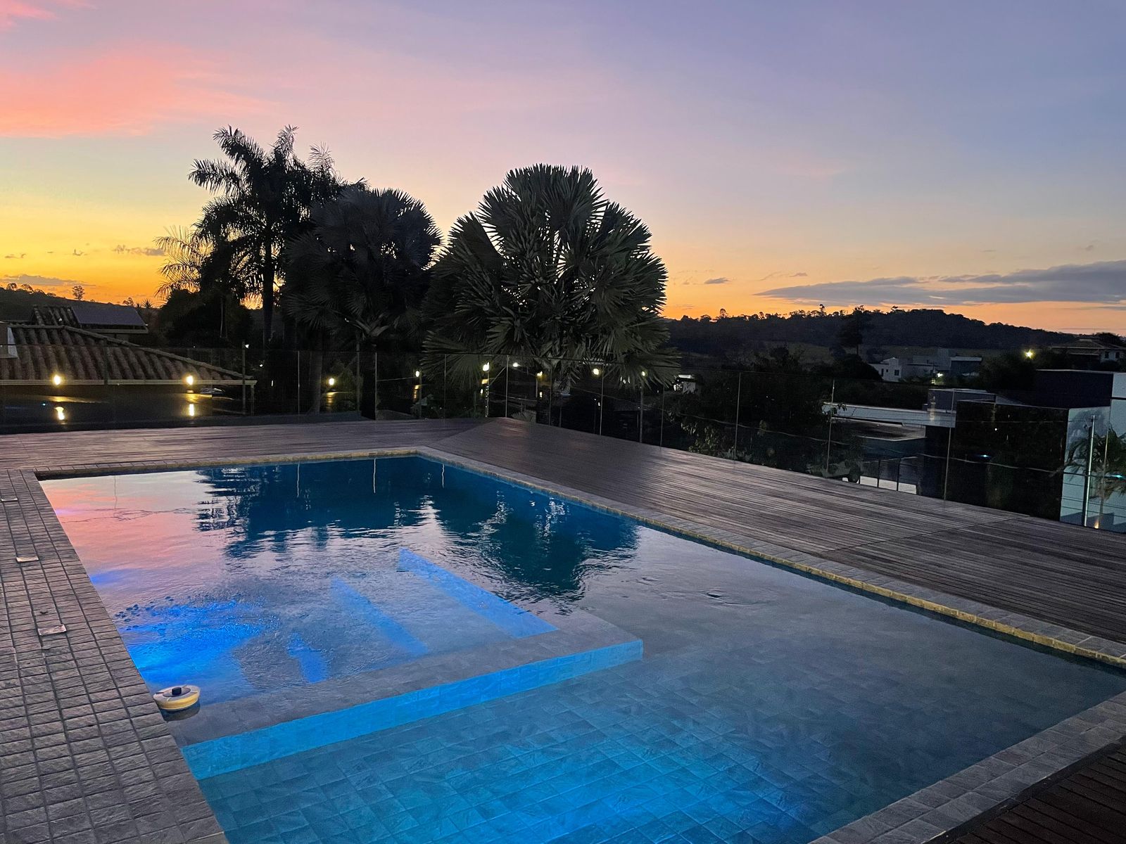 •Piscina 8×4 m com prainha e hidromassagem, além de um deck espaçoso de 90 m²