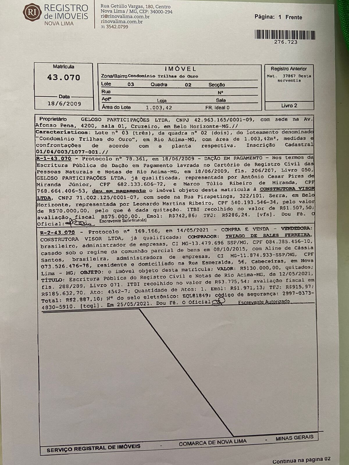 Venda Lote Trilhas do Ouro
